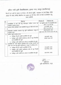 12वीं परीक्षा के परिणामों के आधार पर प्रवेश दिया जाएगा। इच्छुक छात्र-छात्राएं 26 जुलाई 2025 की रात 11:30 बजे तक विश्वविद्यालय की वेबसाइट https://igkv.ac.in पर ऑनलाइन पंजीयन कर सकते हैं।