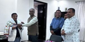 रायपुर।नववर्ष के अवसर पर कुशाभाऊ ठाकरे पत्रकारिता एवं जनसंचार विश्वविद्यालय एलुमनी एसोसिएशन (केटीयूजेएमएए) के प्रतिनिधिमंडल ने गुरुवार को रायपुर स्थित आयुक्त कार्यालय में केटीयू के कुलपति एवं रायपुर संभाग के आयुक्त श्री महादेव कावरे (आईएएस) से शिष्टाचार भेंट की।