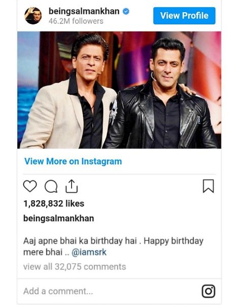 वहीं 2 नवंबर को शाहरुख खान ने अपना 56वां जन्मदिन मनाया। ऐसे में सोशल मीडिया पर उन्हें कई सितारों ने खास मैसेज के साथ जन्मदिन की बधाई दी। इन्हीं में शुमार है शाहरुख खान के सबसे खास दोस्त सलमान खान का नाम।