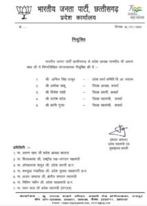 इस आदेश में जिला महामंत्री और पूर्व जिलाध्यक्ष में नए पदों में नियुक्ति दी गई है।