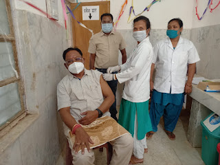 रायपुर। भाजपा प्रदेश अध्यक्ष विष्णुदेव साय ने बुधवार को अपने गृह ग्राम बगिया स्थित प्राथमिक स्वास्थ्य केंद्र पहुंच कर कोविशील्ड वैक्सीन लगवाया और वैक्सीन लगाने वाली नर्स अनुपम लोलिना के कार्य की सराहना करते हुए उन्हें धन्यवाद दिया। भाजपा प्रदेश अध्यक्ष विष्णु देव साय ने छत्तीसगढ़ की जनता से कोविड 19 के विरुद्ध लड़ाई को और तेज करने और एकजुटता के साथ मजबूती से लड़ने का आग्रह करते हुए वैक्सीनेशन के क्राइटेरिया में आने वाले सभी 45 वर्ष से अधिक उम्र के नागरिकों से वैक्सीन लगाने की अपील की है। उन्होंने कहा कि कोरोना के विरुद्ध लड़ाई में विजय प्राप्ति के लिए सभी को वैक्सीन लगवाना जरूरी है। साथ ही कोविड 19 की गाइडलाइन 2 गज की दूरी मास्क है जरूरी और बार-बार हाथ धोने या सेनेटाइज करने के मूल मंत्र का हम सभी को पालन करना और करवाना होगा। उन्होंने वैक्सीन को लेकर भ्रांति और लोगों द्वारा फैलाये गए भ्रम और झूठ से बचने की अपील करते हुए कोरोना को हराने वैक्सीन लगाने और अपने साथ-साथ और भी लोगों को वैक्स्ीानेशन के लिए प्रेरित करने की अपील की हैं।
