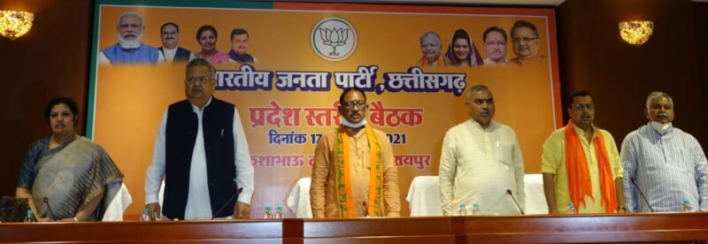 रायपुर। भाजपा के राष्ट्रीय सह संगठन मंत्री शिव प्रकाश, प्रदेश प्रभारी डी पुरेंदश्वरी और सह प्रभारी नितिन नवीन की मौजदूगी में रविवार को कुशाभाऊ ठाकरे परिसर में भाजपा प्रदेश पदाधिकारियों की बैठक शुरू हो गई है. इस बैठक में पूर्व मुख्यमंत्री डॉ रमन सिंह, प्रदेशाध्यक्ष विष्णुदेव साय, नेता प्रतिपक्ष धरमलाल कौशिक समेत सभी आला नेता मौजूद है। दिनभर 3 सत्रों में चलने वाली इस बैठक में पार्टी पदाधिकारियों के कार्यो की समीक्षा की जाएगी।