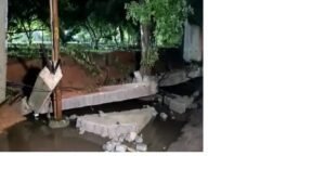 रायपुर। रायपुर में सोमवार को हुई लगभग एक घंटे की बारिश के बाद कई तरह की अव्यवस्थाएं देखने को मिली। दो अलग-अलग जगहों पर हादसे हो गए। लोक निर्माण मंत्री ताम्रध्वज साहू के बंगले की दीवार गिर गई। इस बंगले से कुछ ही दूरी पर अपर कलेक्टर की कार का एक्सीडेंट हो गया। पहली घटना सिविल लाइन इलाके की है। यहां सर्किट हाउस के पास गृहमंत्री और लोक निर्माण मंत्री ताम्रध्वज साहू का सरकारी बंगला है। सोमवार की शाम के वक्त अचानक बंगले के कर्मचारी बाउंड्री वॉल की तरफ भागे। उन्हें धड़ाम की तेज आवाज सुनाई दी। करीब आकर कर्मचारियों ने देखा कि बंगले की बाउंड्री वॉल का करीब 30 फीट का हिस्सा सड़क पर जा गिरा है। सड़क से ही बंगले का अंदरुनी हिस्सा नजर आने लगा। संयोग से कोई बाहर मौजूद नहीं था। लिहाजा इतनी बड़ी दीवार गिरने की वजह से कोई घायल हो सकता था।