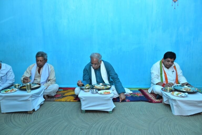 मुख्यमंत्री ने ग्रामीण के साथ जमीन में बैठ खाया खाना