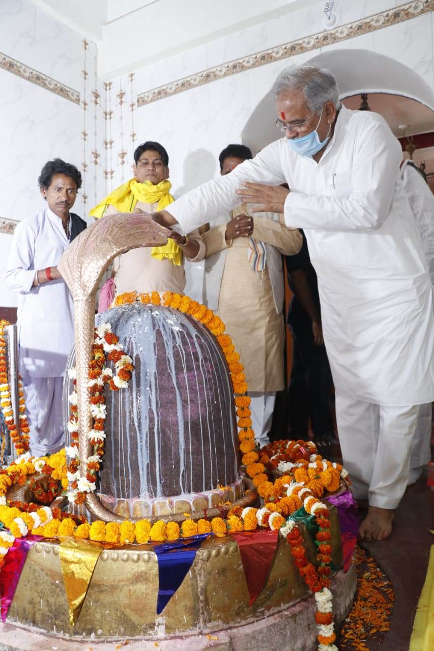 रायपुर। मुख्यमंत्री भूपेश बघेल ने गुरुवार को रायपुर जिले के अभनपुर विकासखंड स्थित सारखी ग्राम के सरखेश्वर नाथ उर्फ सारसनाथ महादेव मंदिर पहुंचकर भगवान भोलेनाथ की पूजा अर्चना कर प्रदेशवासियों की समृद्धि और खुशहाली की कामना की। मुख्यमंत्री ने इस मंदिर में कराए गए जीर्णोंद्धार के कार्यों का लोकार्पण किया और कलश स्थापना के कार्यक्रम में शामिल हुए। उन्होंने इस अवसर पर आयोजित कार्यक्रम में प्रदेश की जनता को महाशिवरात्रि की बधाई और शुभकामनाएं दीं। उन्होंने कहा कि सारखी गांव में प्राचीनता के प्रमाण के रूप में यहां स्थापित आठवीं सदी का शिवलिंग धार्मिक एवं आध्यात्मिक ज्योति के रूप में प्रकाशित है। श्री बघेल ने मंदिर के जीर्णोद्धार के लिए किए गए कार्यों के लिए स्थानीय विधायक धनेंद्र साहू उनके परिवार तथा मंदिर समिति के सदस्यों एवं क्षेत्रवासियों को बधाई देते हुए राज्य की समस्त जनता की तरक्की एवं आर्थिक समृद्धि एवं खुशहाल जीवन की कामना की। मुख्यमंत्री श्री बघेल ने राज्य सरकार द्वारा गांव, गरीब, मजदूर, अनुसूचित जाति, जनजाति, महिलाओं सहित सभी वर्गों के विकास के लिए किए जा रहे कार्यों की जानकारी क्षेत्रवासियों को दी। उन्होंने राजीव गांधी आश्रय योजना, समर्थन मूल्य पर धान खरीदी, गोधन न्याय योजना, गौठान बाड़ी योजना सहित अन्य योजनाओं का उल्लेख करते हुए कहा कि हमारी सरकार शिक्षा, स्वास्थ्य तथा लोगों कि आर्थिक समृद्धि के लिए लगातार प्रयासरत है।