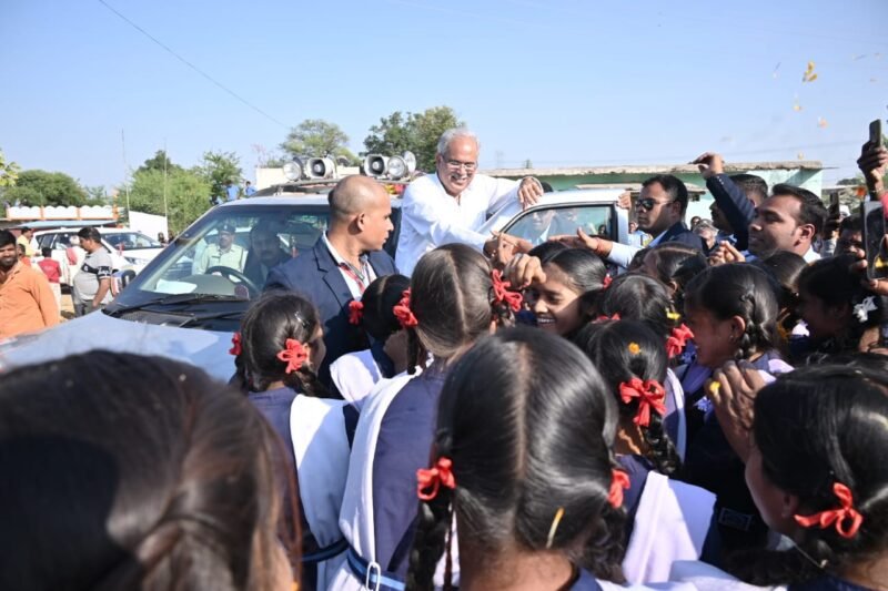 इस दौरान जब मुख्यमंत्री हैलीपैड से कार द्वारा अगले गंतव्य तक पहुँचने के लिए निकले तो हैलीपैड से थोड़ा आगे ही स्कूली बच्चों को देखकर मुख्यमंत्री भूपेश बघेल भी बड़ी सहजता से काफिले को रुकवाया और उनसे मुलाक़ात की। उन्होंने बच्चों से उनके पढ़ाई को लेकर भी बातचीत की। प्रदेश के मुख्यमंत्री से सहजता से मुलाक़ात होने पर स्कूली बच्चे भी उत्साह से भर उठे।