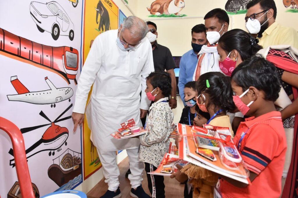 रायपुर। ब्लैक बोर्ड में जैसे ही मुख्यमंत्री ने बच्चे सबसे अच्छे लिखा, बच्चों के चेहरे में प्यारी सी मुस्कान छा गई। मुख्यमंत्री भूपेश बघेल आज दुर्ग जिले के पाटन विधानसभा क्षेत्र के आर-जामगांव में आंगनबाड़ी केन्द्र पहुंचकर निरीक्षण किया। उन्होंने इस दौरान वहां बच्चों का हौसला बढ़ाया। वेदांता समूह के सहयोग से दुर्ग जिले के पाटन विधानसभा क्षेत्र में 101 आंगनबाड़ी केंद्रों के रेनोवेशन के बाद लोकार्पण किया गया। मुख्यमंत्री ने निरीक्षण के दौरान इस आंगन बाड़ी केन्द्र की तारीफ भी की।