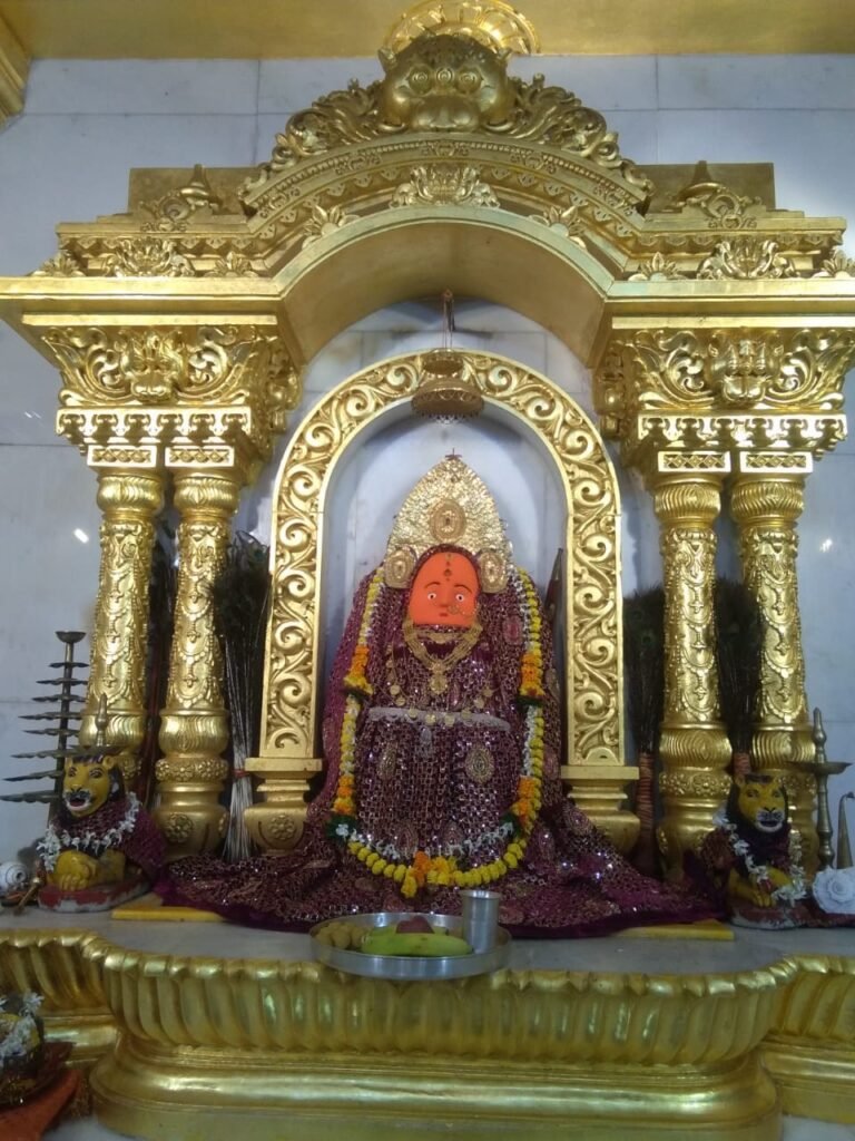 कृष्ण पक्ष तिथि प्रतिपदा दिन रविवार महाअभिषेक पुजन श्रृंगार पश्चात ऊपर पर्वत मे सोने के सिंहासन मे विराजमान एवं धरातल मे सोने के सिंहासन मे विराजमान माँ आदि विद्या ब्रह्म शक्ति बम्लेश्वरी देवी दर्शन।