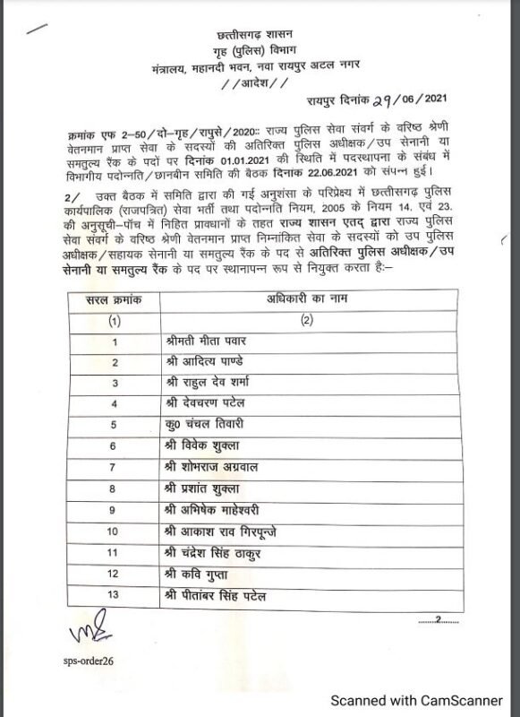 रायपुर। राज्य सरकार ने आज एक और लिस्ट निकली है, 26 डीएसपी का प्रमोशन आदेश जारी किया है। सूची में कई चर्चित चेहरे हैं, जिनके नाम काफी समय से सुनाई दे रहे थे। इसमें विवेक शुक्ला, प्रसांत शुक्ला, पंकज पटेल जैसे कई चर्चित नाम भी शामिल है।