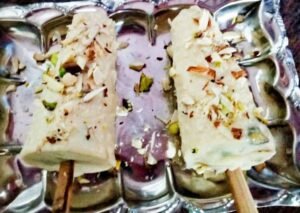 अब चाकू की मदद से कुल्फी को सांचे से निकाल कर 3-4 हिस्सों में काटकर सर्व करें.