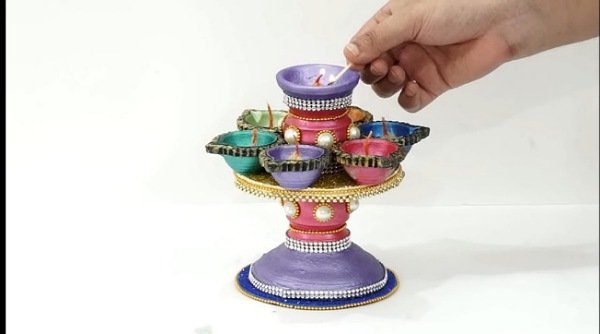छोटे-छोटे मिट्टी के दीये दीवाली की खास पहचान हैं। समय के साथ दीयों के डिज़ाइन और पैटर्न में बहुत बदलाव आ गया है। अब तो अलग-अलग रंगों, स्टाइल और साइज़ में दीये उपलब्ध हैं। पूजा के स्थान पर एक बड़ी थाली में दीयों की श्रृंखला सजाएं या फिर इन्हें स्टैंड में रखें, ये सुंदर दिखेंगे।