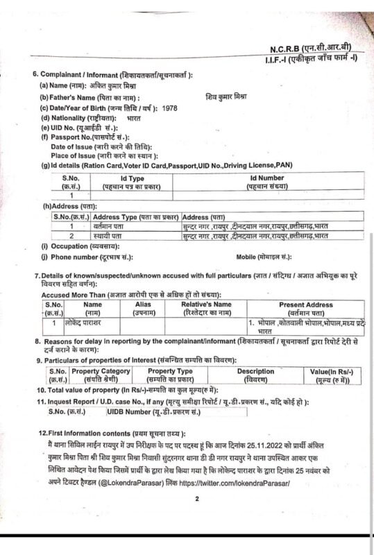 – रायपुर के सिविल लाइन में शिकायत