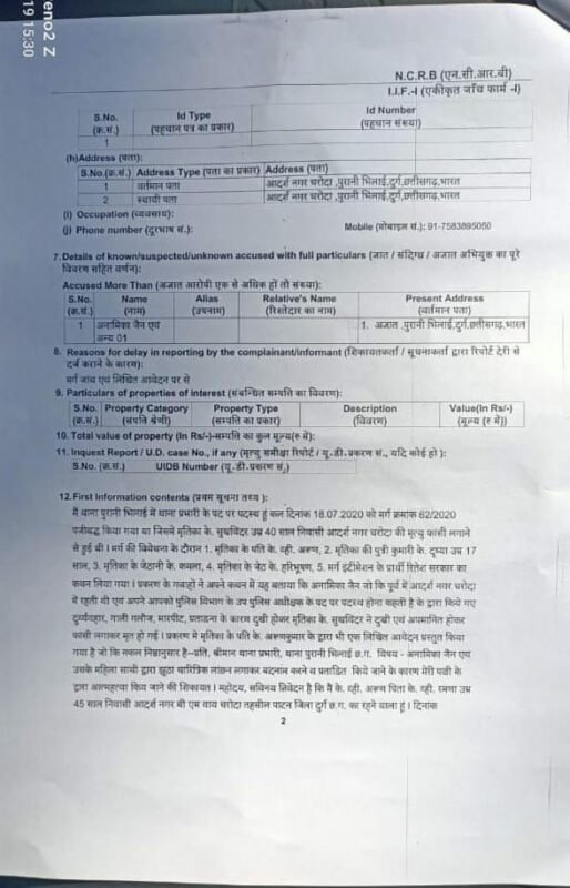 प्रदर्शनकारियों से चर्चा के बाद मृतका के पति की लिखित शिकायत पर डीएसपी अनामिका जैन श्रीवास्तव और उनकी सहेली पायल के खिलाफ FIR NO 199 / 2020 भादवि की धारा 306,34 का मामला दर्ज किया गया। अनामिका जैन श्रीवास्तव का ससुराल चरोदा में है। वे बेरला एसडीओपी भिलाई दुर्ग मे सेवाये दे चुकी है अनामिका जैन बास्केटबॉल की अच्छी खिलाडी भी रही है फिलहाल महिला उप पुलिस अधीक्षक को फरार बताया जा रहा है उनका फोन भी लगातार बंद आ रहा है।