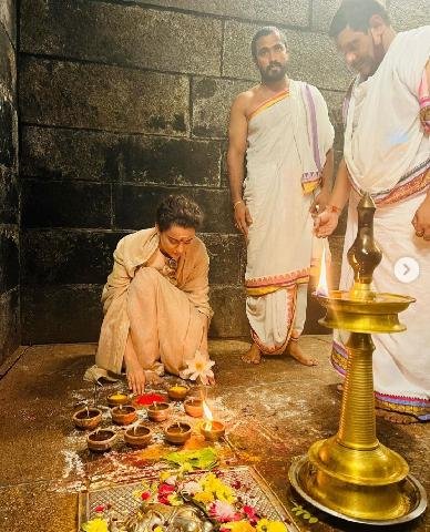लुक की बात करें तो इन तस्वीरों में कंगना क्रीम कलर की साड़ी और बालों का बन बनाए बेहद खूबसूरत लग रही हैं। इसके अलावा कंगना ने तिरुपति बालाजी मंदिर के दर्शन के बाद की भी एक तस्वीर शेयर की, जिसमें वो रेड सिल्क साड़ी और गोल्डन ज्वेलरी में गॉर्जियस दिख रही हैं। इसे शेयर करते हुए एक्ट्रेस ने नए साल की बधाई देते हुए लिखा-सभी को नए साल की शुभकामनाएं… तिरुपति बालाजी के आशीर्वाद से इस साल की शुरुआत…आशा है कि यह एक यादगार है।
