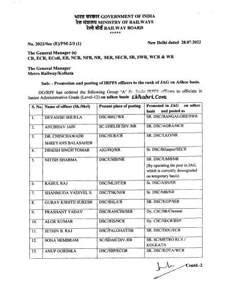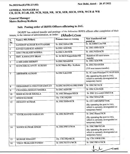 रायपुर। डीजी आरपीएफ ने देशभर में बड़े स्तर में फेरबदल किया है। जारी सूची के अनुसार 29 आरपीएफ डिप्टी सीएससी, सीनियर डीएससी, डीएससी स्तर के अधिकारियों के तबादले और प्रमोशन किए गए है।