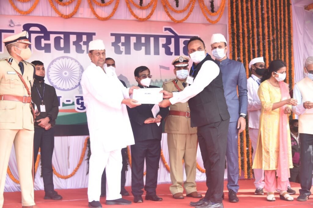 मुख्य अतिथि मंत्री मोहम्मद अकबर, ने ध्वजारोहरण पश्चात समारोह में उल्लेखनीय कार्य करने वाले विभिन्न विभागों के अधिकारियों और कर्मचारियों को सम्मानित किया।