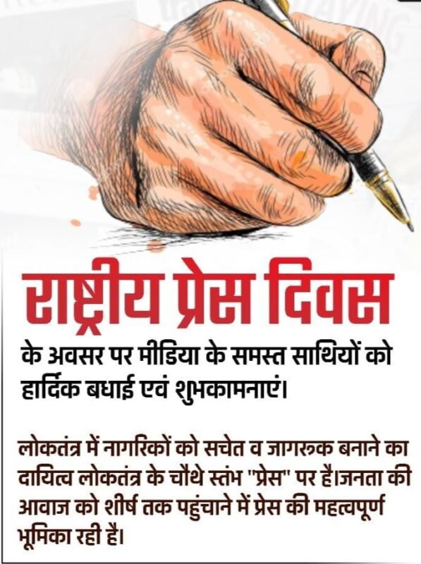 – राष्ट्र के विकास में निरंतर संवाद और निष्पक्ष पत्रकारिता के माध्यम से अहम योगदान देने वाले पत्रकार साथियों को EKHABRI टीम की ओर से राष्ट्रीय प्रेस दिवस की हार्दिक शुभकामनाएं।