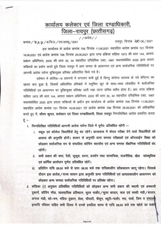 रायपुर। अनलॉक रायपुर के तहत सब खुल रहा है। कलेक्टर ने आज नया आदेश जारी कर राजधानी के अब पार्क, वाटर पार्क, सिनेमा हॉल, मल्टीप्लेक्स, थियेटर, पार्क और स्वीमिंग पूल को भी खोलने की अनुमति दी है।