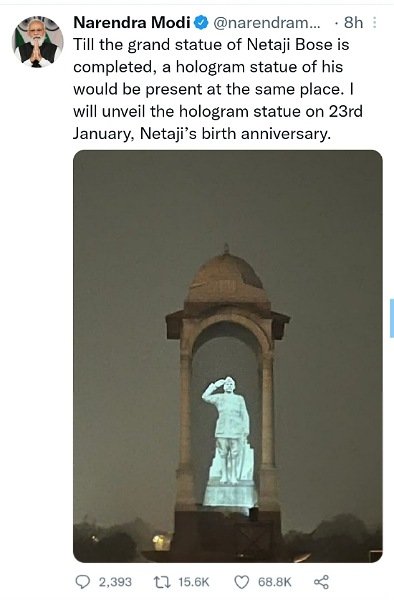 प्रधानमंत्री ने कहा कि जब तक नेताजी की ग्रेनाइट की प्रतिमा बनकर तैयार नहीं हो जाती तब तक उस स्थान पर उनका एक होलोग्राम प्रतिमा वहां लगाई जाएगी।