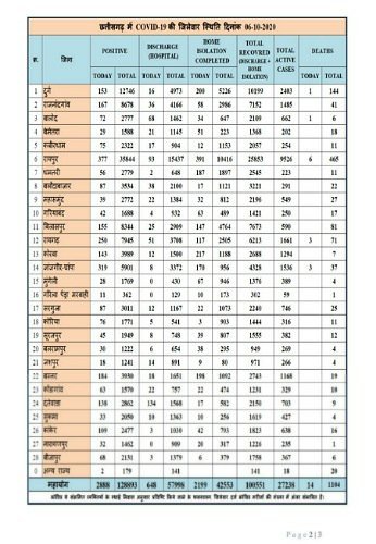 कोरोना की खबर: प्रदेश में 27238 एक्टिव केस,2888 मिले नए मरीज,28 सौ से अधिक स्वस्थ व 14 मौतें