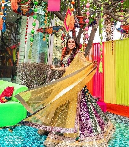 आपको बता दें कि 15 नवंबर 2021 को श्रद्धा के परिवार ने उनके लिए मेहंदी सेलिब्रेशन का आयोजन किया था। मेहंदी सेरेमनी से सामने आई तस्वीरों में हम देख सकते हैं कि, श्रद्धा बैंगनी और पीले रंग के लहंगे में बहुत खूबसूरत लग रही हैं। उन्होंने अपने लुक को स्टेटमेंट नेकपीस, मैचिंग ईयररिंग्स और मांग टीका से स्टाइल किया था।