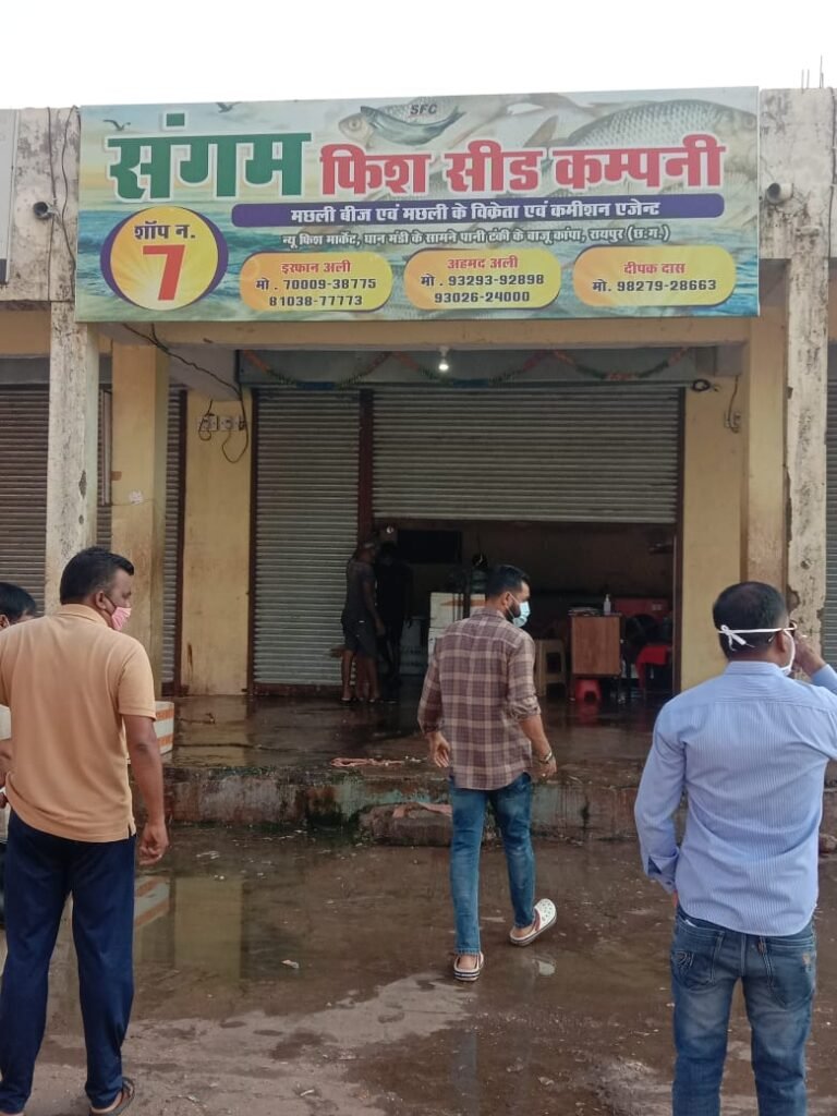 जिसकी सूचना पर नगर निगम जोन क्रमांक 3 के जोन कमिश्नर महेन्द्र पाठक के नेतृत्व एवं जोन कार्यपालन अभियन्ता चित्रसेन प्रधान, जोन सहायक राजस्व अधिकारी महादेव रकसेल की उपस्थिति में जोन के राजस्व विभाग ने दबिश दी और संगम फिश सीड कम्पनी नामक मछली दुकान को ताला लगाकर सीलबंद करने की कड़ी कार्यवाही रायपुर जिला प्रशासन के आदेश का व्यवहारिक परिपालन के तहत की गई।