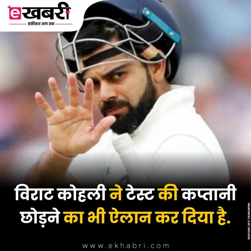 भारतीय क्रिकेट टेस्ट टीम के कप्तान विराट कोहली ने टेस्ट कप्तानी छोड़ने का भी एलान कर दिया। विराट ने यह फैसला दक्षिण अफ्रीका में पहली बार टेस्ट सीरीज जीतने में विफल रहने के अगले दिन लिया है। वह टी 20 और वनडे की कप्तानी पहले ही छोड़ चुके हैं। विराट ने यह घोषणा करते हुए कहा कि हर चीज को किसी समय रुकना पड़ता है और मेरे लिए भारत की टेस्ट कप्तानी छोड़ने का यह सही समय है।’विराट ने भारत की टी 20 टीम की कप्तानी पहले ही छोड़ दी थी और बीसीसीआई ने दक्षिण अफ्रीका दौरे से पहले उन्हें वनडे कप्तान के पद से हटा दिया था। विराट ने अपने इंटरनेट मीडिया अकाउंट पर कहा, पिछले सात वर्षों में रोजाना कड़ी मेहनत और अथक प्रयासों से टीम को सही दिशा में ले जाने का काम किया। इस सफर के दौरान कई उतार चढ़ाव रहे लेकिन आत्मविश्वास की कमी कभी नहीं रही। मेरा हमेशा यह विश्वास रहा है कि मैं जो भी करूं उसमें अपना 120 प्रतिशत दूं।