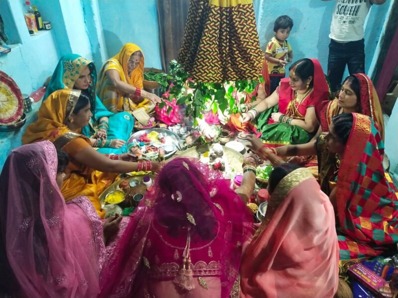 चार पहर तीज की पूजा की गई। पहले पहर की पूजा के समय ही देवी पार्वती और शिव जी की स्थापना की गई। इनके बाद महिलाओं ने मूर्ति के ऊपर फुलेरा सजाया गया। शिव जी को प्रिय धतूरा, आक का फूल चढ़ा कर वरदान मांगा। वही पार्वती माँ में शृंगार का सामान अर्पित कर पूजा को पूर्ण किया ।