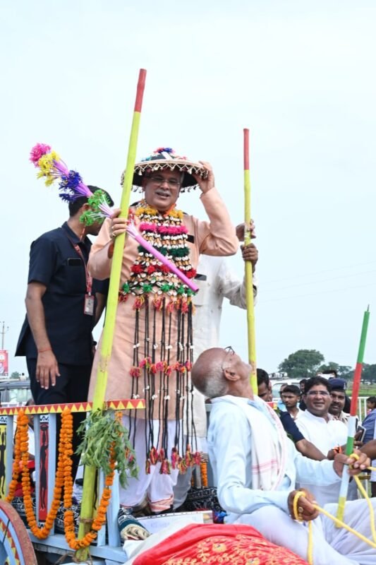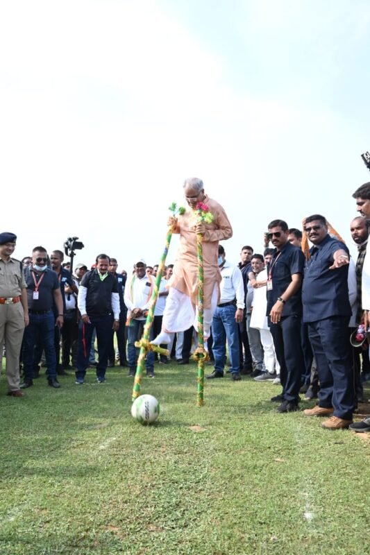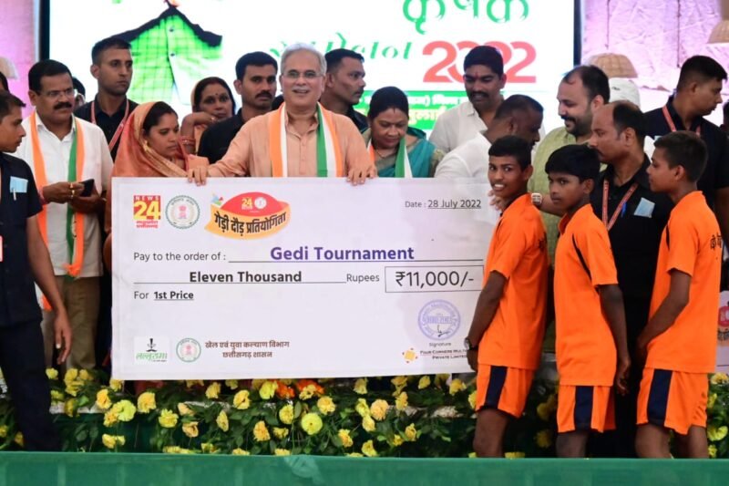 गेड़ी से लगाई फुटबाल पर किक- मुख्यमंत्री इस दौरान गेड़ी में भी चढ़े और गेड़ी दौड़ के लिए एंकरिंग भी की। उन्होंने इसके बाद गेड़ी पर सवार होकर पूरे मैदान का चक्कर लगाया। लोग उस समय हतप्रभ रह गये जब उन्होंने गेड़ी से ही पूरे जोर से फुटबाल का ऐसा किक लगाया जो सीधे गोलपोस्ट में पहुंचा। उन्होंने इस अवसर पर आयोजित गेड़ी प्रतियोगिता के विजेताओं को पुरस्कृत भी किया।