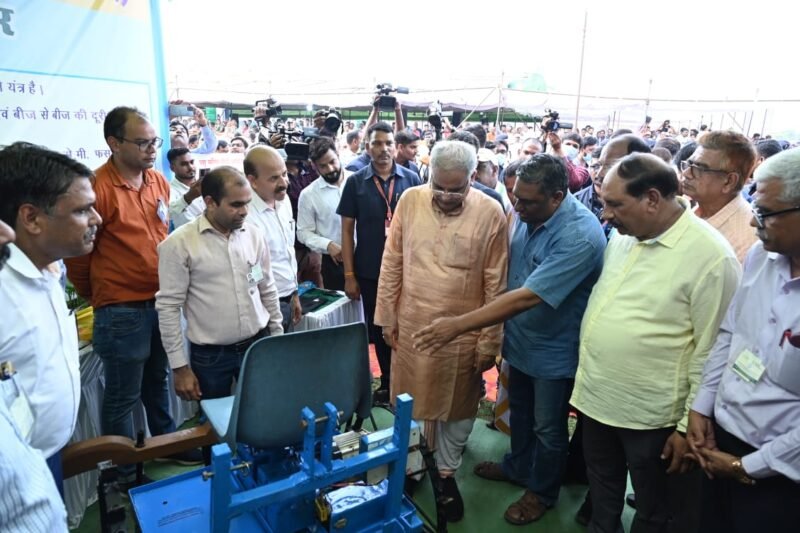 मुख्यमंत्री ने कहा कि आम जनता तक इन यंत्रों की पहुंच बनाने के लिए पूरी सहायता दी जाएगी। उल्लेखनीय है कि एग्री एंबुलेंस और एग्रीकल्चर ड्रोन के माध्यम से खेती किसानी काफी आसान होगी। 20 गांवों में समूह के माध्यम से एग्रीकल्चर ड्रोन के माध्यम से छिड़काव हो सकेगा। ड्रोन चलाने के लिए समूह के लोगों को प्रशिक्षित किया जाएगा। मुख्यमंत्री ने इस अवसर पर किसानों से चर्चा भी की। किसानों ने मुख्यमंत्री के प्रति आभार व्यक्त किया। मुख्यमंत्री ने कहा कि शासन की कृषि को बढ़ावा देने की नीतियों का असर रहा कि पिछले साल 98 लाख मीट्रिक टन धान की खरीदी हुई। इस साल 110 लाख मीट्रिक टन धान की खरीदी की उम्मीद है। मुख्यमंत्री ने इस अवसर पर अनेक योजनाओं के हितग्राहियों को चेक भी वितरित किये और ट्रैक्टर आदि सामग्री का वितरण भी किया। इस मौके पर जिला पंचायत सीईओ श्रीमती शालिनी रिवेंद्र यादव ने भी संबोधन किया और मुख्यमंत्री को ग्रामीण विकास की योजनाओं के लिए धन्यवाद दिया। कलेक्टर पुष्पेंद्र मीणा ने संक्षेप में दुर्ग जिले में हो रही ग्रामीण विकास की गतिविधियों की जानकारी दी। इस मौके पर संभागायुक्त महादेव कांवड़े, आईजी बद्रीनारायण मीणा एवं एसपी डा.अभिषेक पल्लव, जिला पंचायत सीईओ अश्विनी देवांगन सहित अन्य अधिकारी मौजूद थे।